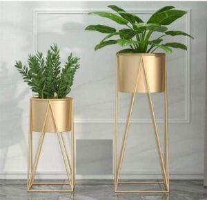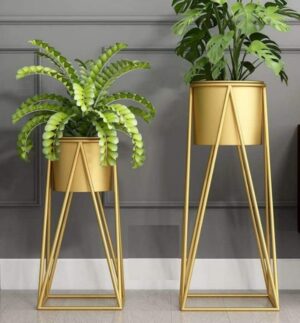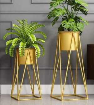 Gold colour Elevated metal plant-holder for your beloved plants in a sophisticated and settled corner to make it striking and eye-catching in your home.